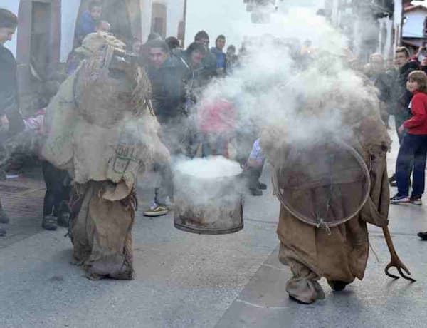 Carnaval de Laza (Orense), los grandes protagonistas del Carnaval de Laza son «Os Peliqueiros» que acompañan a «Os Fulións» Su misión es ahuyentar a los malos espíritus. La Morena y el Maragato son otros personajes de este carnaval.