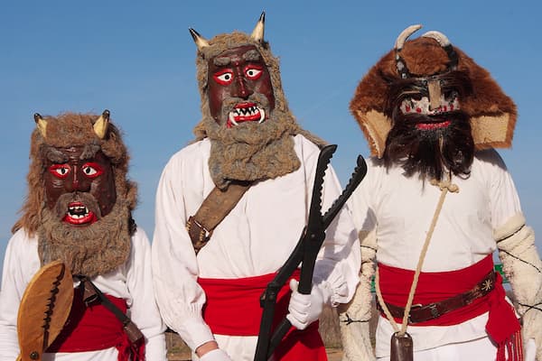 Diablos y Mascaritas en Luzón (Guadalajara) estos personajes siniestros personajes portan sobre la cabeza una cornamenta de toro que pesa alrededor 7 kilos; además, en la cintura llevan grandes cencerros de metal que agitan vigorosamente durante sus recorridos por el pueblo. Logran una apariencia infernal al cubrirse el cuerpo con un betún hecho con cenizas y aceite, una dentadura postiza moldeada a mano con patata cruda aporta un toque aterrador.