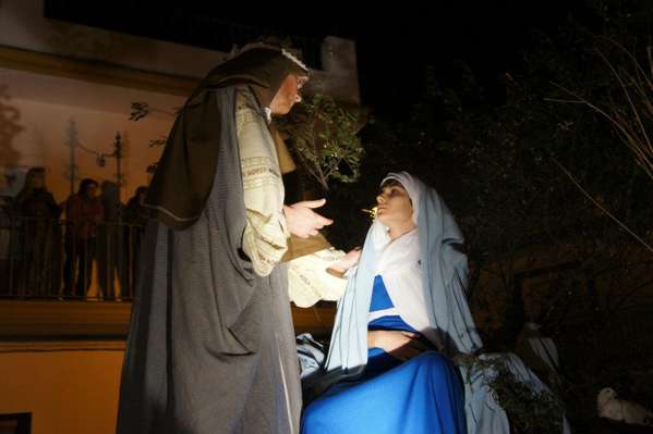Son 12 carrozas, cada una representando diferentes pasajes donde los participantes parecen esculturas de personajes bíblicos. Las escenas recrean fielmente la vida en tiempos de Jesús, hábitos, costumbres. Se repreentan entre otras escenas; la anunciación a María, a los pastores, el nacimiento de Jesús, Herodes.