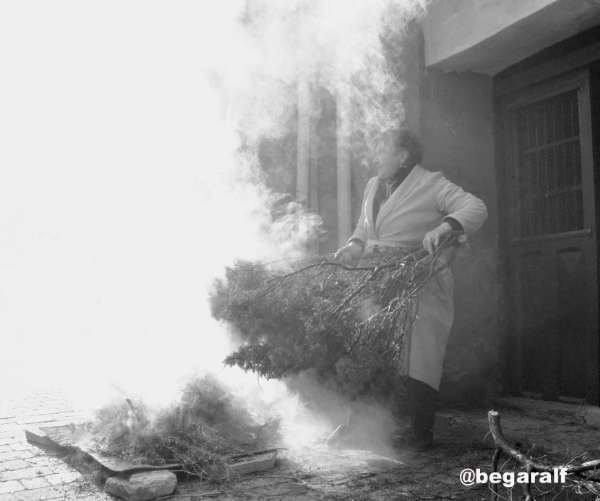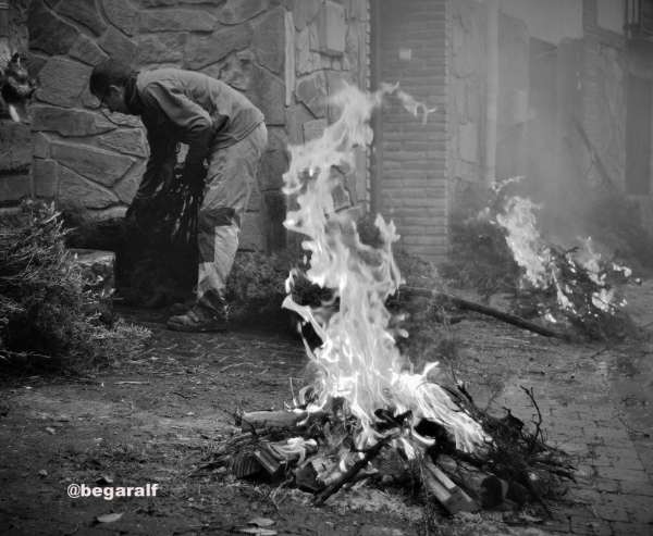 Aparqué el coche y levanté las vista; ví un par de columnas de humo y fácilmente pude localizar el epicentro de este rito tan curioso. A medida que me acercaba al pueblo comprobaba que las calles tornaban estrechas y sombrías.